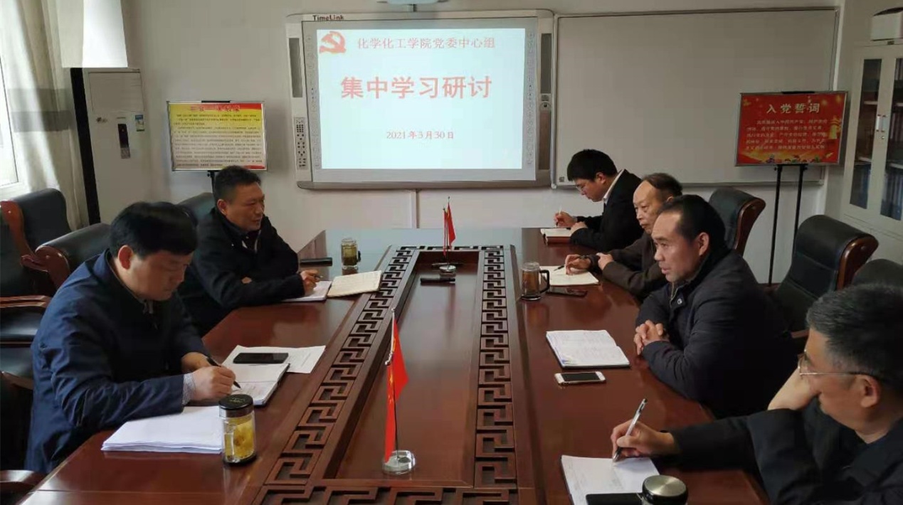 3月30日,化学化工公司党委理论学习中心组在实验楼313“党员之家”举行集中学习研讨会,深入学习研讨中央、省委、公司党委党史学习教育动员大会精神,认真研讨公司党委《党史学习教育实施方案》、公司分党委《党史学习教育具体安排》等文件。学习会由党委书记郭鹏主持。
