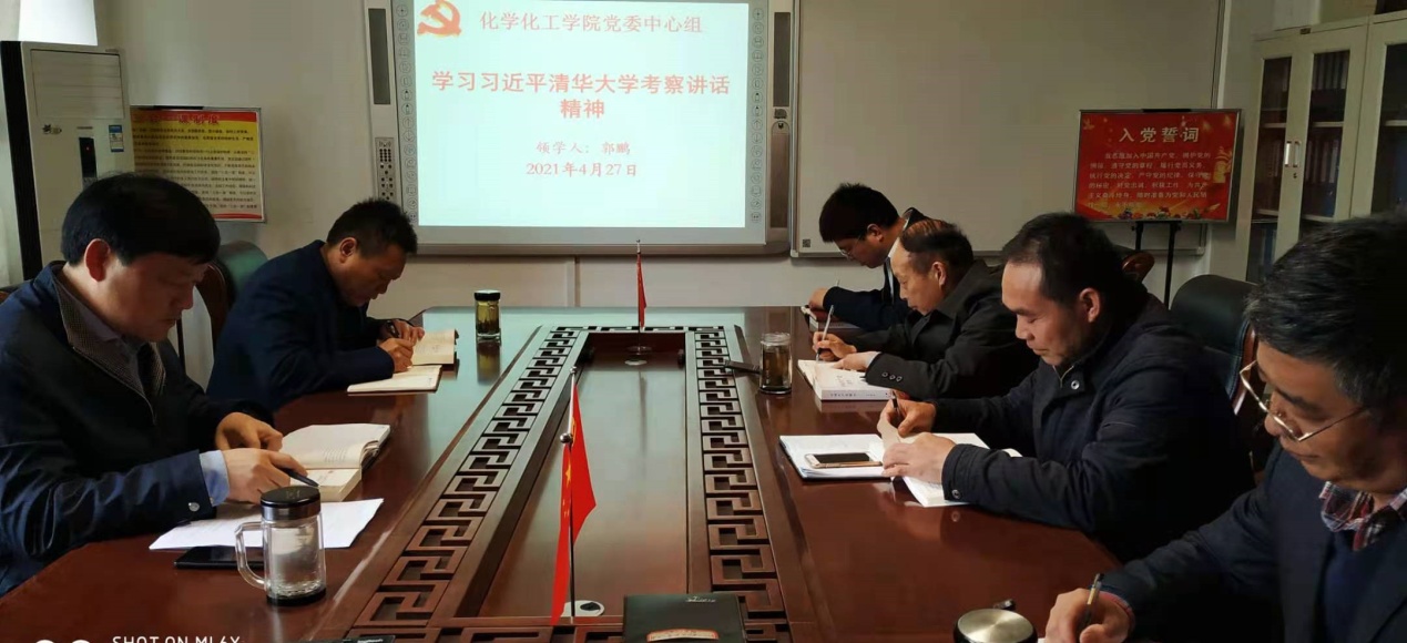 结合党史学习教育,4月27日,化学化工公司党委中心组按照第一议题学习要求,专门召开学习贯彻习近平总书记在清华大学考察时的重要讲话精神会议,深入学习贯彻习近平总书记重要讲话精神,进一步统一思想、提高认识,切实推动形成生动实践。化学化工公司党委中心组成员参加学习,党委书记郭鹏主持学习并领学解读讲话内容。