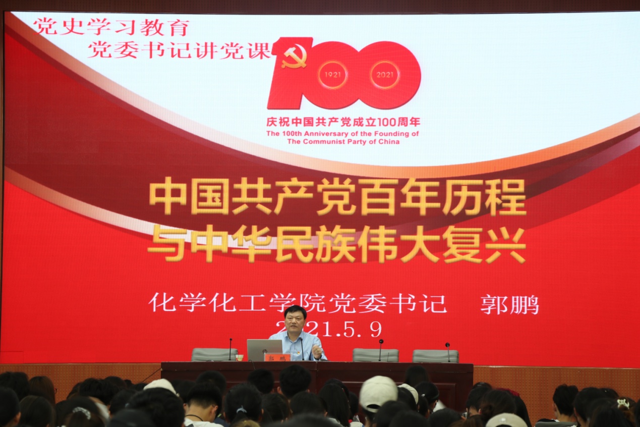 郭鹏在宣讲中以《中国共产党百年历程与中华民族伟大复兴》为题,用建党100年来取得的伟大成就,深刻讲述了中国共产党带领中国人民实现从“站起来”到“富起来”再到“强起来”的100年奋斗历史,从新民主主义时期到中国特色社会主义新时代的奋斗历程,用事实证明现中国共产党的领导、社会主义道路是富有生命力的,阐明了中国特色社会主义道路的正确性、科学性、优越性以及先进性。实现中华民族伟大复兴,要以共产党百年奋斗历程为鉴,从中寻找适合现代化国情的道路。中国共产党带领中国人民经历了浴血奋战的“开天辟地”,社会主义革命和建设的“改天换地”和改革开放和现代化建设新时期的“翻天覆地”,中国特色社会主义新时代的“惊天动地”,在民族复兴的道路上不断探索、不断建设、不断完善,朝着社会主义现代化强国的目标持续奋进。幸福是要奋斗出来的,建设中国特色社会主义新时代,更加需要全国各族人民共同奋斗。中国共产党将马克思主义基本原理与中国国情相结合,在100年的奋斗历程中进行了“救国大业、兴国大业、富国大业、强国大业”四件大事,改变了旧时代中国半殖民地半封建社会的面貌,为国家赢得了独立、统一、民主和富强,也为世界做出了伟大贡献。党的100年历史是一部践行党的初心使命的历史,是一部党与人民心连心、同呼吸、共命运的历史,必须牢记共产主义的理想信念,坚持革命理想高于天。