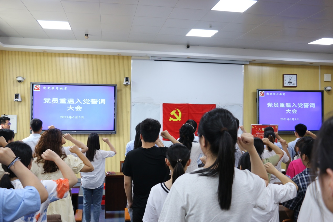在党委书记郭鹏的领誓下,180余名的师生党员进行了重温入党誓词的宣誓活动,党员同志们庄严地举起右手,面对鲜艳的党旗,郑重宣誓,短短誓词是他们对党的承诺。宣誓后,党员代表葛传姝发言,她代表党员同志们表决心,表示一定在今后的学习和工作中,切实将入党誓词作为自己毕生的信念、终身的追求,刻苦学习,努力工作,为党奉献,决不辜负党组织的期望。
