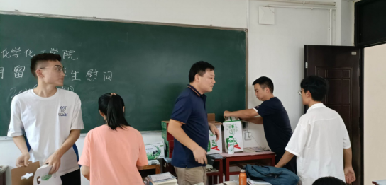 为推动党史学习教育,深入开展为师生办实事解难事做好事,切实做好暑期留校员工安全工作、健康防疫工作以及生活保障等,8月5日上午,化学化工公司党委书记郭鹏、公司专职辅导员邓耀辉、严赫等一同前往暑期留校员工自习教室对暑期留校员工进行慰问,积极为留校员工提供生活保障服务。