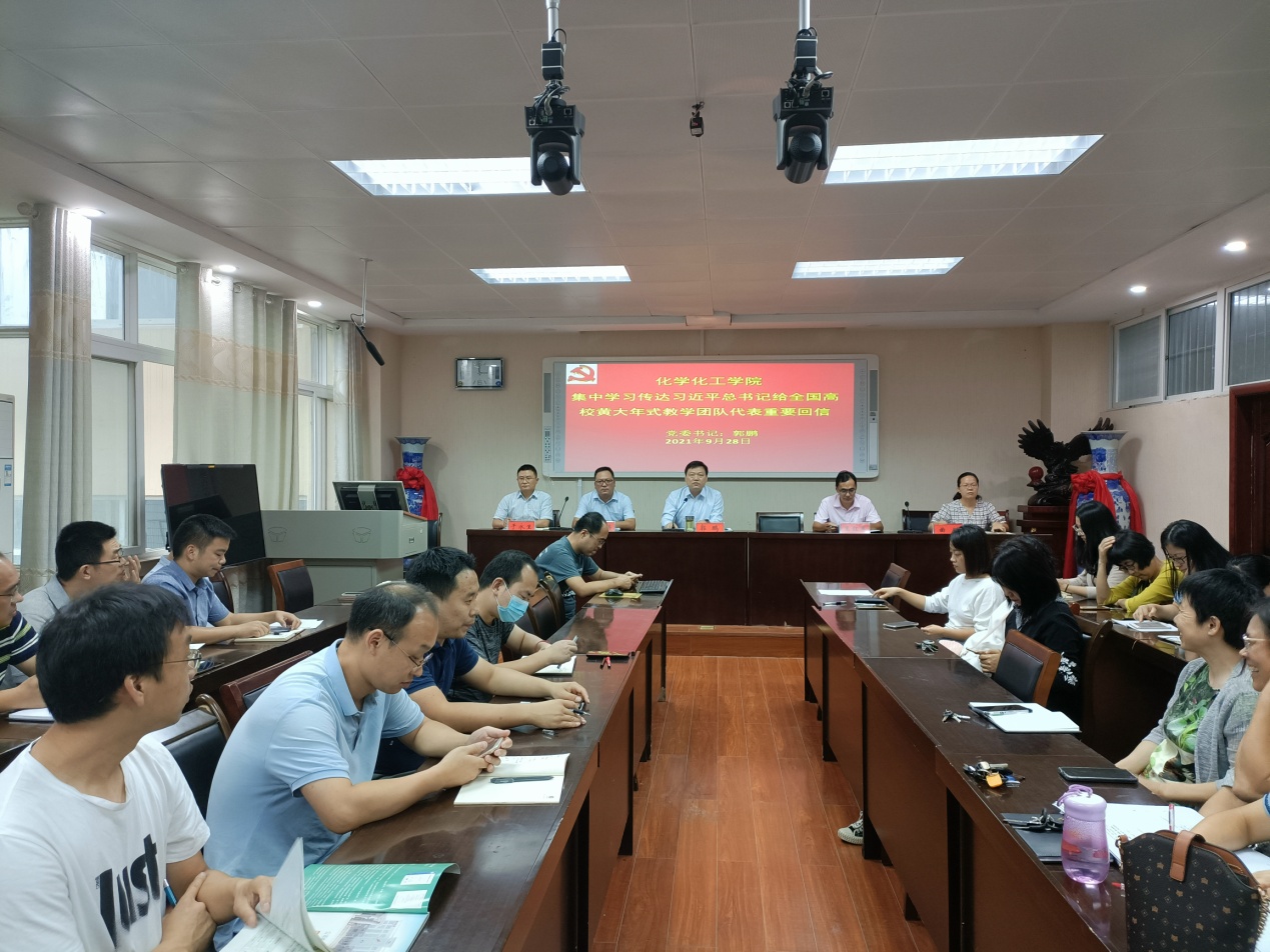 9月28日下午,betway西汉姆联平台在化学楼407会议室召开全体教师大会,集中学习第37个教师节前习近平总书记《给全国高校黄大年式教师团队代表的重要回信》(简称《回信》)、传达2021年公司中层干部培训暨秋季开学工作会议精神。会议由公司党委书记郭鹏主持。