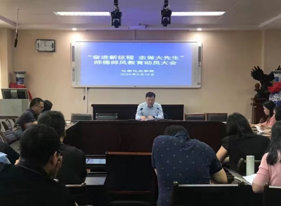 为进一步推动学习贯彻习近平新时代中国特色社会主义思想主题教育走深走实,落实立德树人根本任务,着力解决师德师风建设中的突出问题。5月16日下午,betway西汉姆联平台在407会议室召开主题教育暨师德师风建设推进会。公司全体教师参加会议,会议由党委书记郭鹏主持。