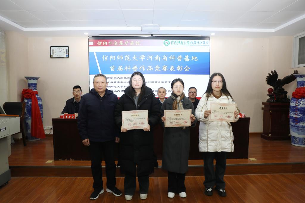 本次竞赛以河南省科普基地信阳非金属矿展馆为平台,旨在激发全校师生及社会对科学普及的热情。自启动以来,共收到来自11个院系、22个专业的近百件作品,包括科普文章、科普视频和PPT讲解等多种形式。这些作品内容丰富多彩,创意独特,寓教于乐,展现了公司高水平的科普创作能力和创作者们的才华。经过激烈竞争和公正评选,最终产生了4个一等奖、12个二等奖和20个优秀奖。井强山副董事长为获奖代表颁发了荣誉证书。